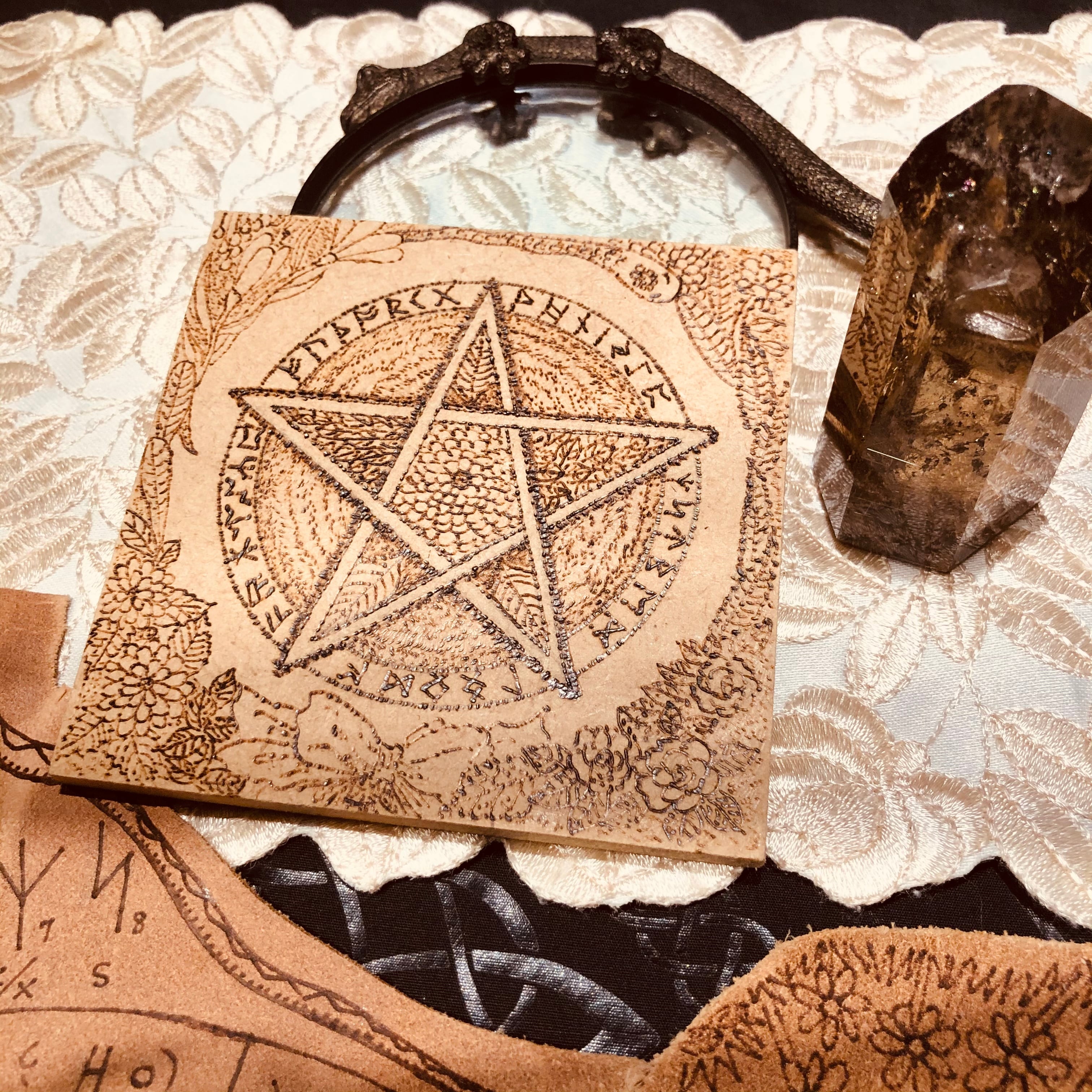 木材合板に焼き付ける、ウッドバーニングの技法で描いてあります。