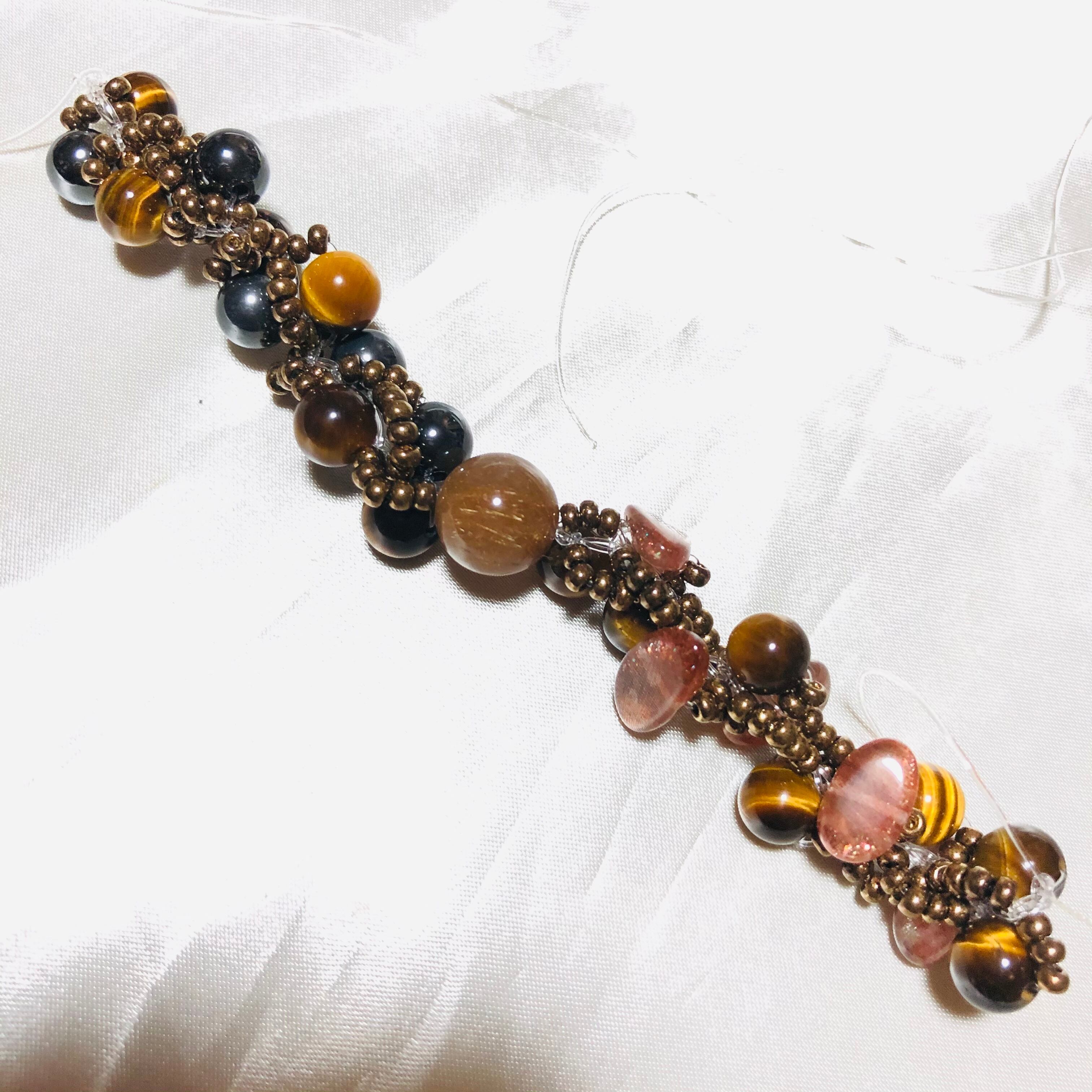 #パワーストーン #スモーキールチルクォーツ #サンストーン #ヘマタイト #ガラスビーズ #タイガーアイ #ビーズクロッシェ