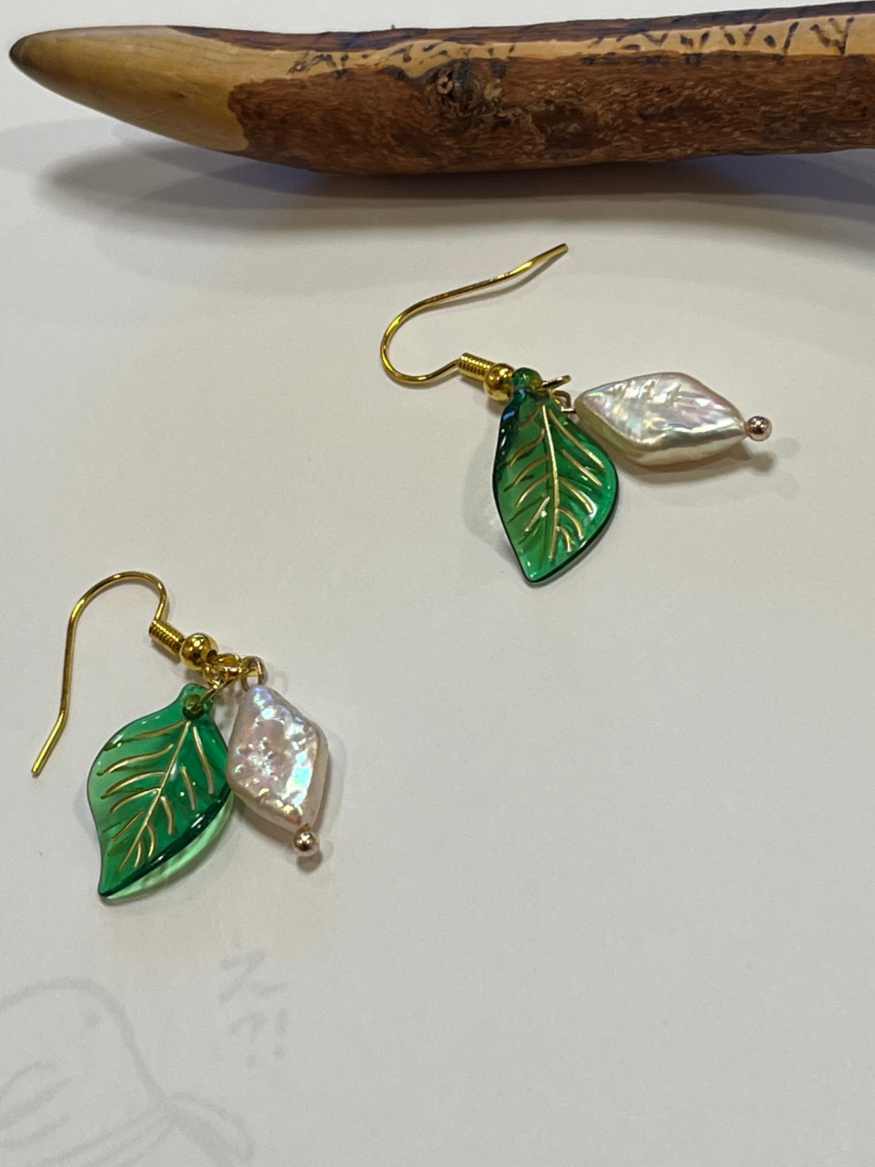 蟹座新月 森の雫 淡水パール ピアス
